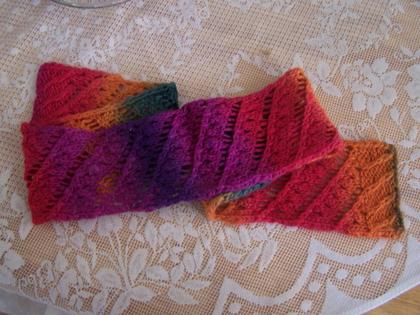 Of course, the colours I liked the best (the purples) ended up smack in the middle of the scarf, where it hides at the back of your neck. But it's a scarf I'd definitely make again, probably in Silk Garden or Kureyon next time.