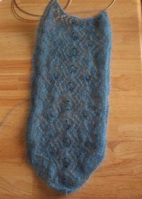 It's a great knit! I've done four of the centre eleven repeats. I'm loving the Kid Seta, and I always like to knit with beads, so this is great fun! Except, as I said the other day, it gets sticky and grabby if you need to tink it.