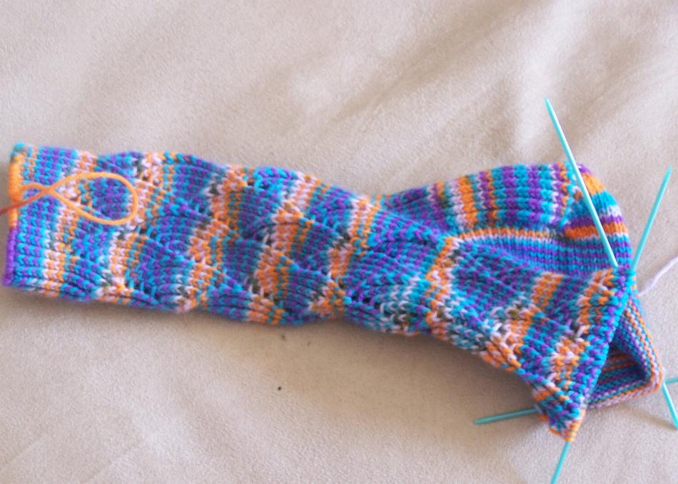 I enjoyed the first sock, and it was done quickly, but the second sock not so much. No idea why, but I was over it halfway down the leg. The way the yarn patterned differently on the second sock may have something to do with it.